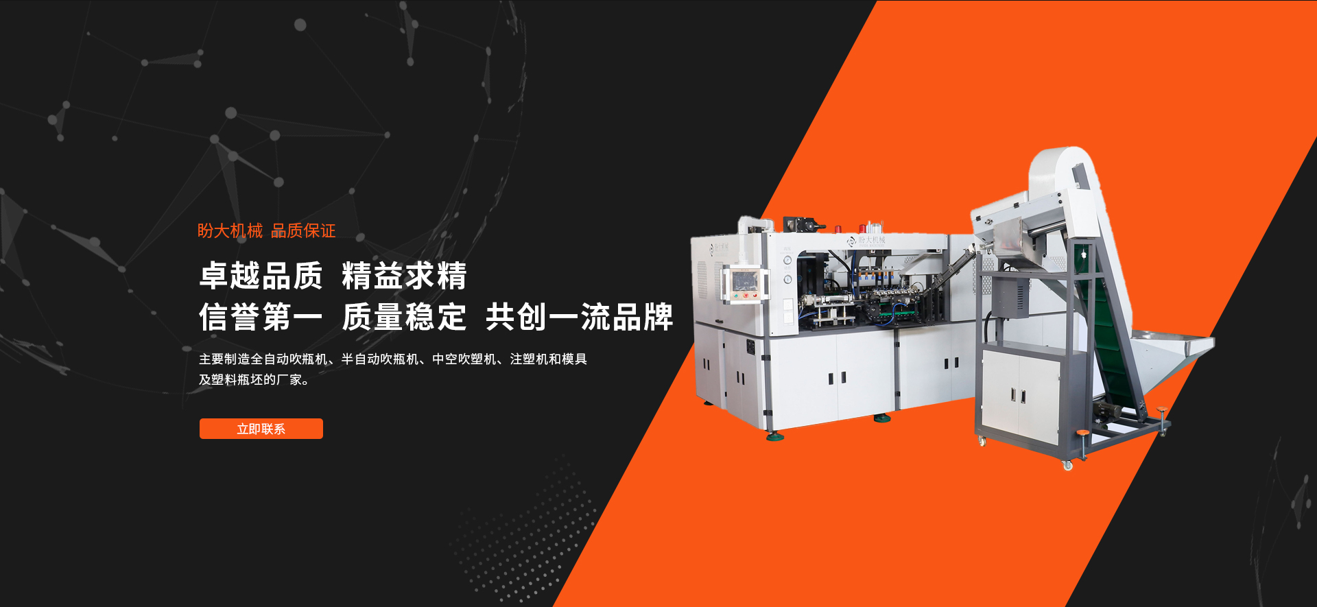 臺州盼大機械有限公司座落于東海之濱, 著名的“蜜桔之鄉(xiāng)”和“模具王國”—浙江黃巖。主要制造全自動吹瓶機、半自動吹瓶機、中空吹塑機、注塑機和模具及塑料瓶坯的廠家。本廠擁有多年的生產(chǎn)經(jīng)驗,采用進(jìn)口和國產(chǎn)的高質(zhì)量生產(chǎn)設(shè)備和檢驗儀器。MT系列多功能吹瓶機是本廠生產(chǎn)和研發(fā)的一種操作簡單、成品率高、適用性廣、可靠性穩(wěn)定的吹瓶機。采用進(jìn)口的先進(jìn)氣動元件,設(shè)計以高效益,高精度,維修安全,集美觀耐用于一體。